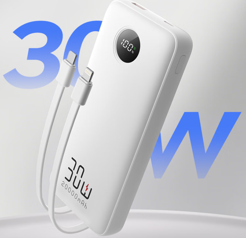 积分: 9900 京东京造30W快充充电宝3c认证京东自营可上飞机自带线20000毫安大容量移动电源