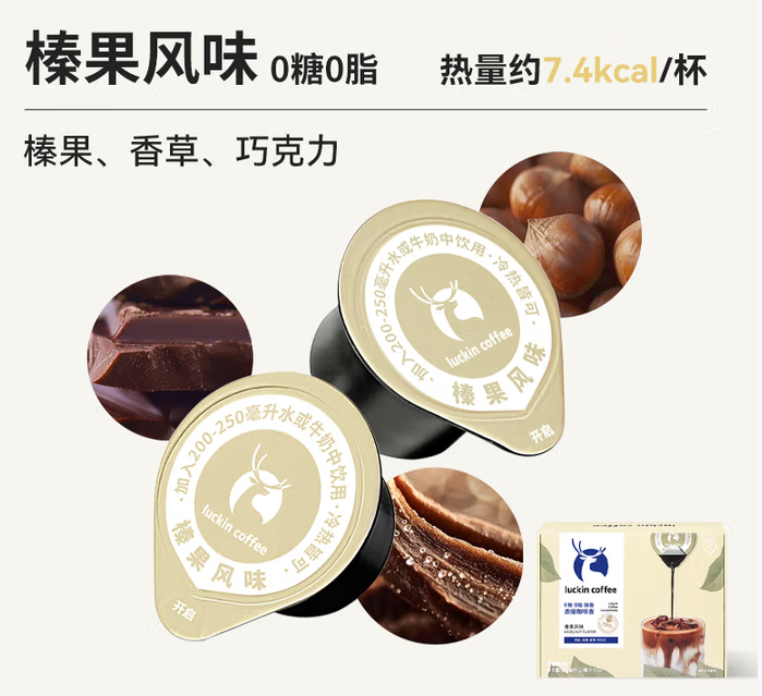 积分: 6900 瑞幸咖啡即享0糖0脂醇香浓缩咖啡液榛果风味18ml*32颗美式生椰拿铁黑咖啡
