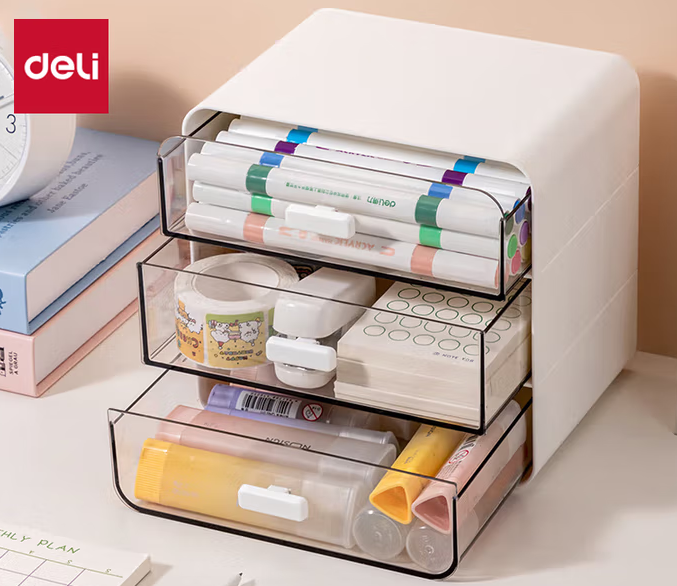 积分: 2000 得力(deli)抽屉式桌面收纳盒 笔筒文具收纳办公室书桌宿舍整理神器化妆品置物架 办公用品