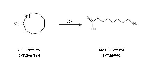 1.通过2-氮杂环壬酮合成8-氨基辛酸,收率约10%;