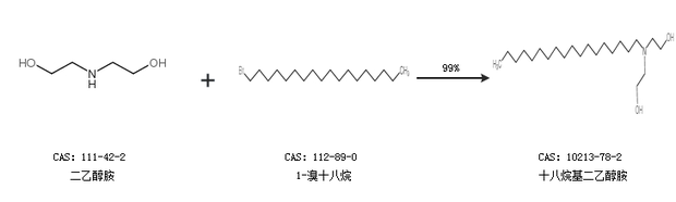 1.通过二乙醇胺和1-溴十八烷合成十八烷基二乙醇胺,收率约99%;