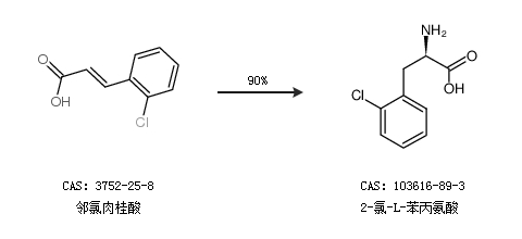 1.通过邻氯肉桂酸合成2-氯-L-苯丙氨酸,收率约90%;
