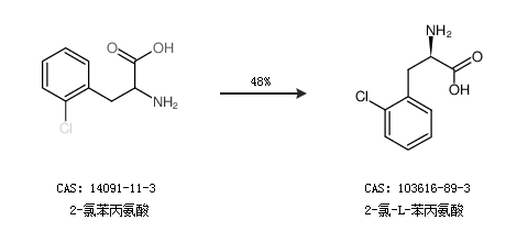 2.通过2-氯苯丙氨酸合成2-氯-L-苯丙氨酸,收率约48%;