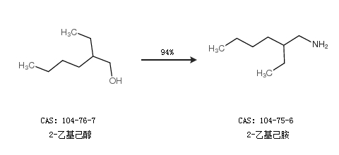 1.通过2-乙基己醇合成2-乙基己胺,收率约94%;