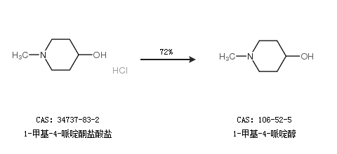 1.通过1-甲基-4-哌啶酮盐酸盐合成1-甲基-4-哌啶醇,收率约72%;