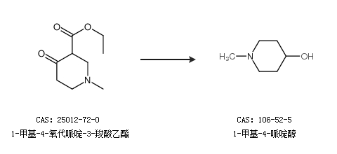 2.通过1-甲基-4-氧代哌啶-3-羧酸乙酯合成1-甲基-4-哌啶醇