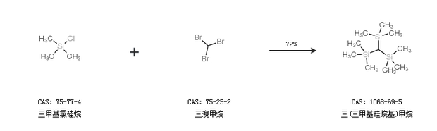 1.通过三甲基氯硅烷和三溴甲烷合成三(三甲基硅烷基)甲烷,收率约72%;