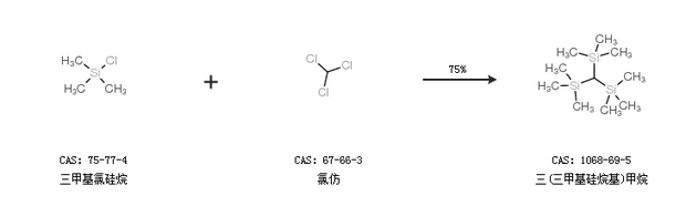 2.通过三甲基氯硅烷和氯仿合成三(三甲基硅烷基)甲烷,收率约75%;