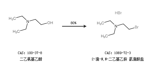 1.通过二乙氨基乙醇合成2-溴-N,N-二乙基乙胺 氢溴酸盐,收率约80%;