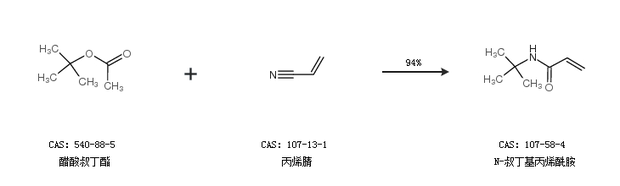 1.通过醋酸叔丁酯和丙烯腈合成N-叔丁基丙烯酰胺,收率约94%;