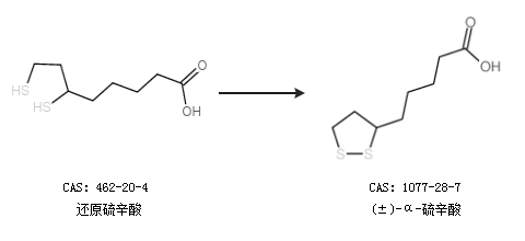 英文别名 5-(1,2-Dithiolan-3-yl)pentanoic acid;DL-6,8-Thioctic acid;(±)-α-Lipoic acid;5-(dithiolan-3-yl)pentanoic acid;(±)-1,2-Dithiolane-3-pentanoic acid;DL-α-Lipoic acid;DL-Thioctic acid;6,8-Dithiooctanoic acid;1,2-Dithiolane-3-pentanoic acid;