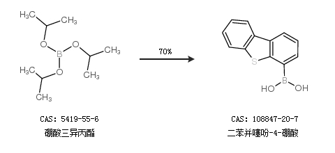 1.通过硼酸三异丙酯合成二苯并噻吩-4-硼酸,收率约70%;