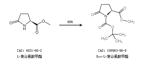 1.通过L-焦谷氨酸甲酯合成Boc-L-焦谷氨酸甲酯,收率约99%;