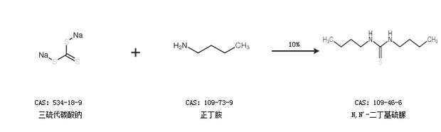 2.通过三硫代碳酸钠和正丁胺合成N,N''-二丁基硫脲,收率约10%;