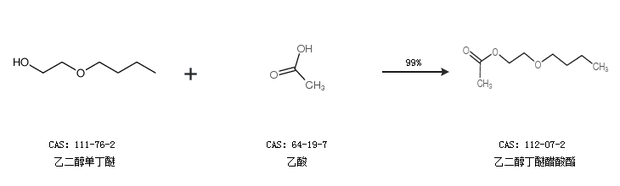 1.通过乙二醇单丁醚和乙酸合成乙二醇丁醚醋酸酯,收率约99%;