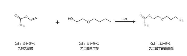 2.通过乙酸乙烯酯和乙二醇单丁醚合成乙二醇丁醚醋酸酯,收率约10%;