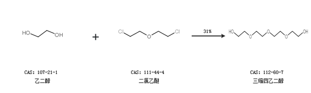 1.通过乙二醇和二氯乙醚合成三缩四乙二醇,收率约31%;