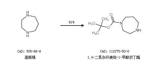 1.通过高哌嗪合成1,4-二氮杂环庚烷-1-甲酸叔丁酯,收率约91%;
