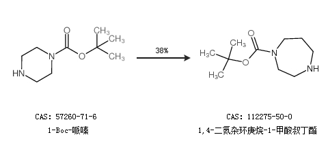 2.通过1-Boc-哌嗪合成1,4-二氮杂环庚烷-1-甲酸叔丁酯,收率约38%;