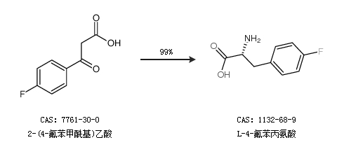 2.通过2-(4-氟苯甲酰基)乙酸合成L-4-氟苯丙氨酸,收率约99%;
