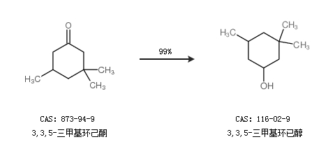 1.通过3,3,5-三甲基环己酮合成3,3,5-三甲基环已醇,收率约99%;