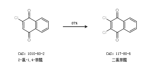 2.通过2-氯-1,4-萘醌合成二氯萘醌,收率约87%;