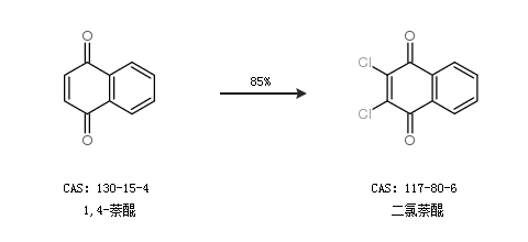 1.通过1,4-萘醌合成二氯萘醌,收率约85%;