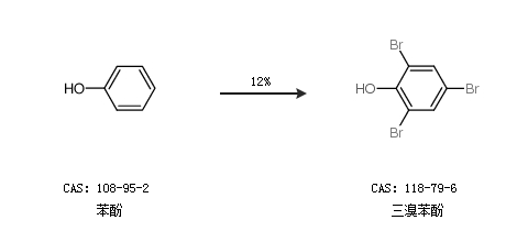 2.通过苯酚合成三溴苯酚,收率约12%;