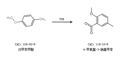 2.通过对甲苯甲醚合成4-甲氧基-3-硝基甲苯,收率约70%;