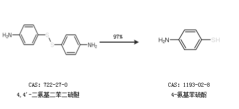 1.通过4,4''-二氨基二苯二硫醚合成4-氨基苯硫酚,收率约97%;