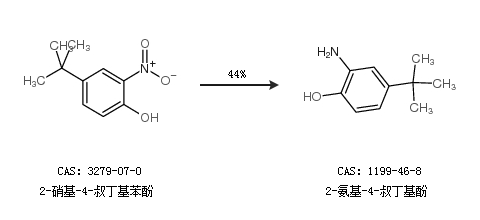 2.通过2-硝基-4-叔丁基苯酚合成2-氨基-4-叔丁基酚,收率约44%;