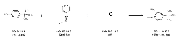 1.通过4-叔丁基苯酚、氯化重氮苯和碳黑合成2-氨基-4-叔丁基酚