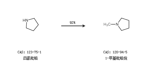 1.通过四氢吡咯合成1-甲基吡咯烷,收率约92%;