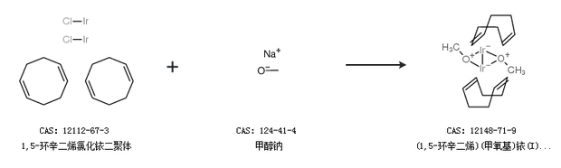 1.通过1,5-环辛二烯氯化铱二聚体和甲醇钠合成(1,5-环辛二烯)(甲氧基)铱(I)二聚体