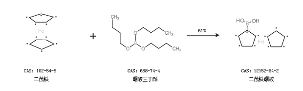 1.通过二茂铁和硼酸三丁酯合成二茂铁硼酸,收率约61%;