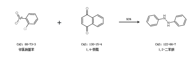 1.通过邻氯硝基苯和1,4-萘醌合成1,2-二苯肼,收率约93%;