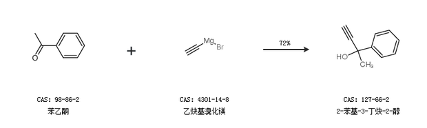 1.通过苯乙酮和乙炔基溴化镁合成2-苯基-3-丁炔-2-醇,收率约72%;