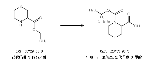 2.通过硫代吗啉-3-羧酸乙酯合成4-(N-叔丁氧羰基)硫代吗啉-3-甲酸