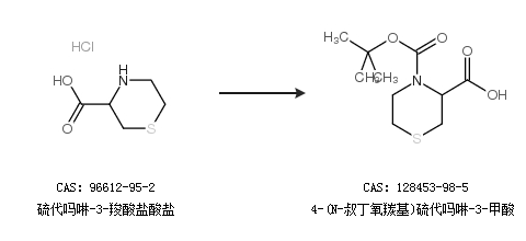 1.通过硫代吗啉-3-羧酸盐酸盐合成4-(N-叔丁氧羰基)硫代吗啉-3-甲酸