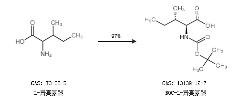 1.通过L-异亮氨酸合成BOC-L-异亮氨酸,收率约99%;