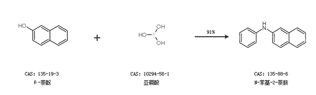2.通过β-萘酚和亚磷酸合成N-苯基-2-萘胺,收率约91%;
