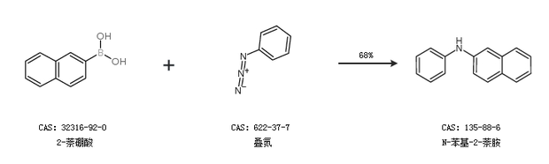 1.通过2-萘硼酸和叠氮合成N-苯基-2-萘胺,收率约68%;