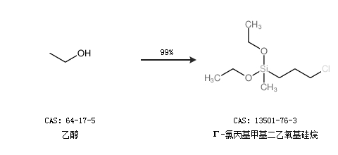 1.通过乙醇合成Γ-氯丙基甲基二乙氧基硅烷,收率约99%;