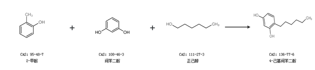 2.通过2-甲酚、间苯二酚和正己醇合成4-己基间苯二酚