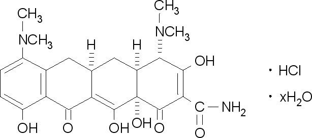 盐酸米诺环素,盐酸二甲胺四环素,4,7-双(二甲氨基)-1,4,4a,5,5a,6,11,12a-八氢弹0,12,12a-四氧基-1,11-二氧-2-并四苯羧酰胺