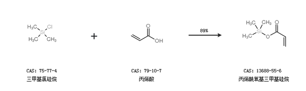 1.通过三甲基氯硅烷和丙烯酸合成丙烯酰氧基三甲基硅烷,收率约89%;