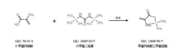 1.通过2-甲基丙烯酸和六甲基二硅脲合成甲基丙烯酸三甲基硅酯,收率约81%;
