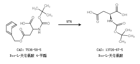 2.通过Boc-L-天冬氨酸 4-苄酯合成Boc-L-天冬氨酸,收率约97%;