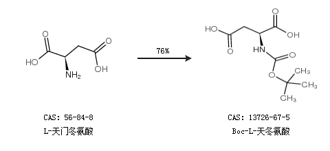 1.通过L-天门冬氨酸合成Boc-L-天冬氨酸,收率约76%;