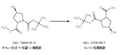 1.通过N-Boc-反式-4-羟基-L-脯氨酸甲酯合成Boc-L-羟脯氨酸
